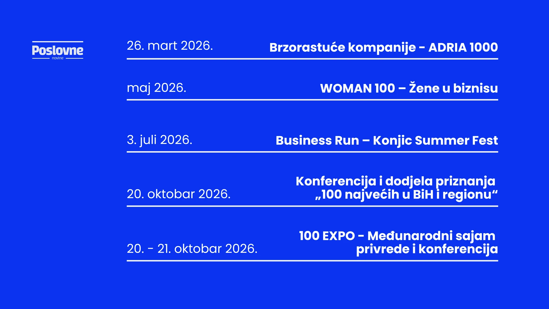 • Konferencija i svečanost dodjele priznanja “100 najvećih” – 20. oktobar 2026.